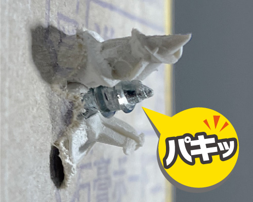 取付け物をあてがい、アンカーにビスをねじ込んでいきます。開脚するとパキッと音がします。