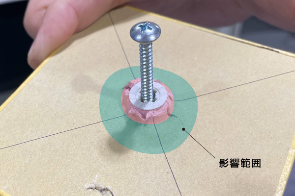 | 試験材 | ボード厚さ | 下穴 | 試験時ビス径 | 最大引張強度 |